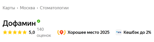 5.0 - Яндекс рейтинг максимальный, 140 оценок